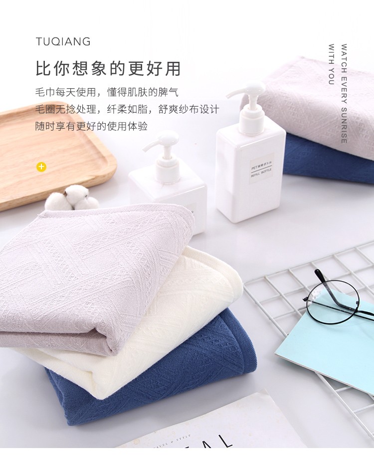 図強3条純綿ガーゼタオル両面家庭用ソフト吸水大人子供全綿洗顔タオル米+青+灰33*73 cm【写真価格ブランド見積】