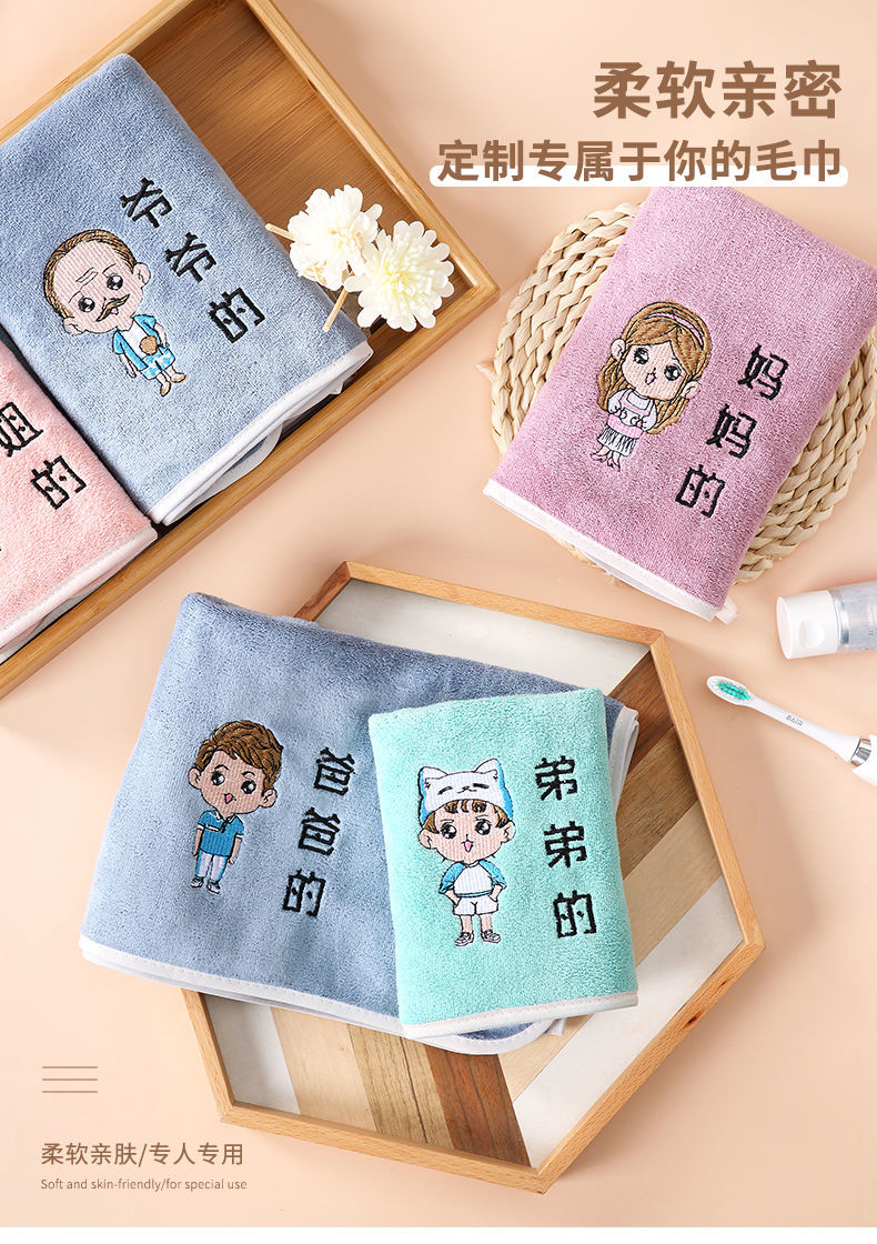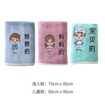亲子タオル比纯コットン吸水不掉毛儿子柔软可爱洗颜巾家庭用男女家庭用35*75 CM子供30*60 CM家族3人パパとママの男の子
